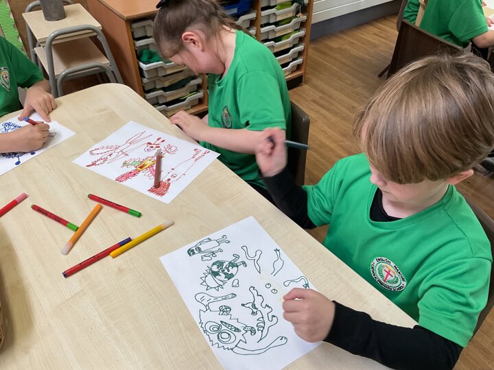 Year 2 joined a Children’s University masterclass where we heard from an illustrator called Laura who does animations for CBeebies. She demonstrated how to draw a range of amazing monsters and then the children all had a go.