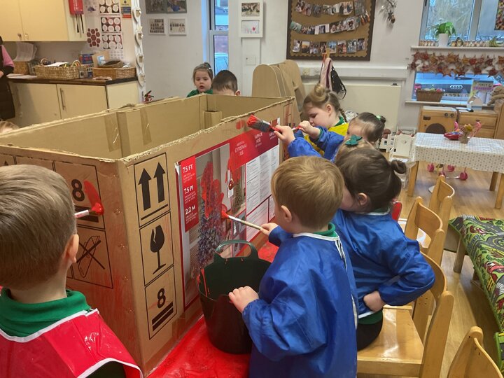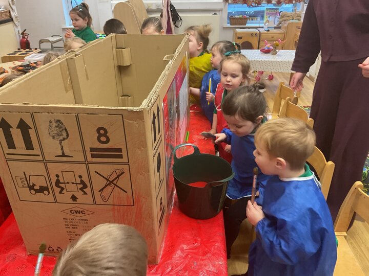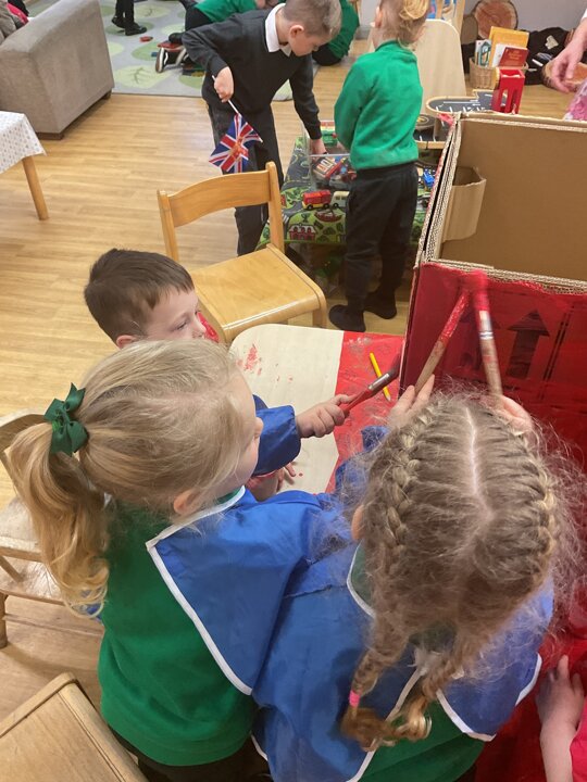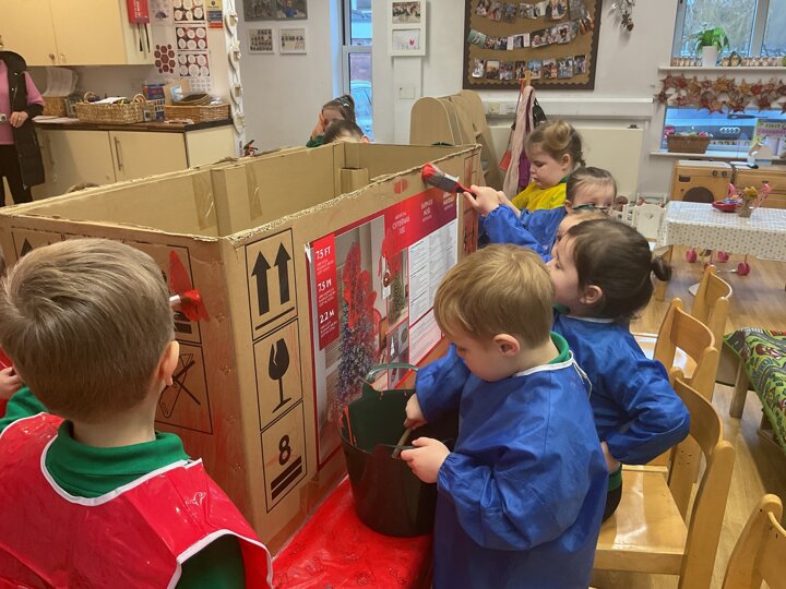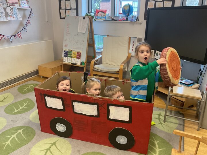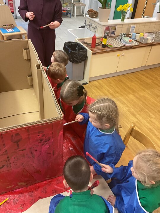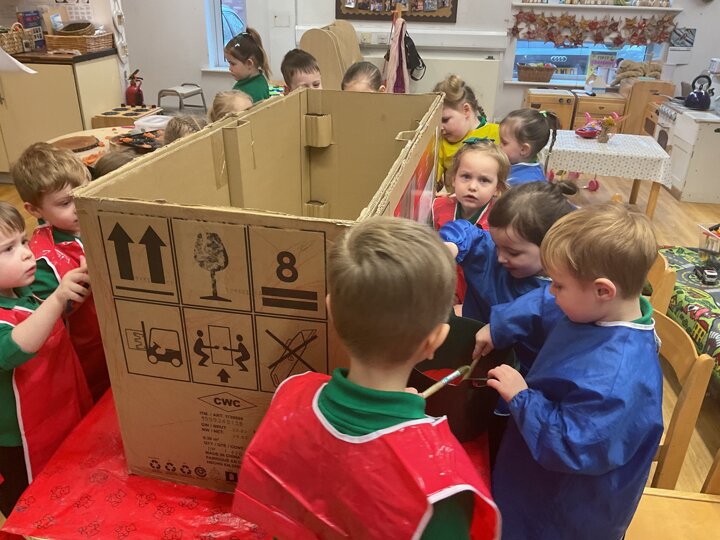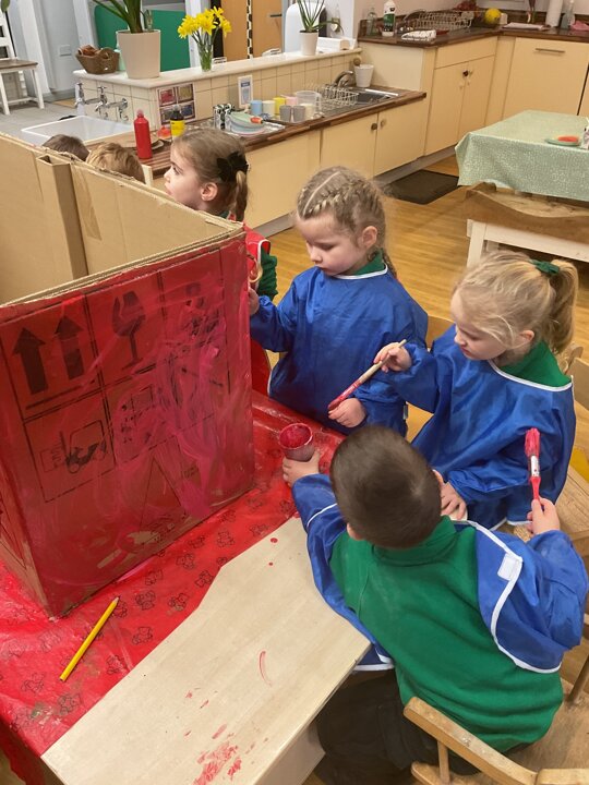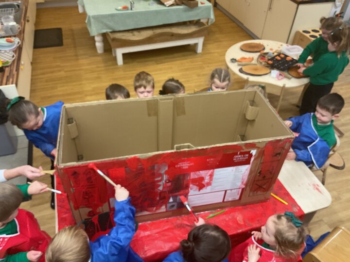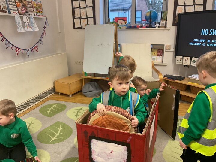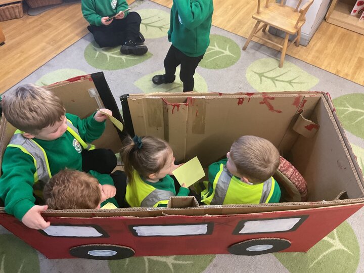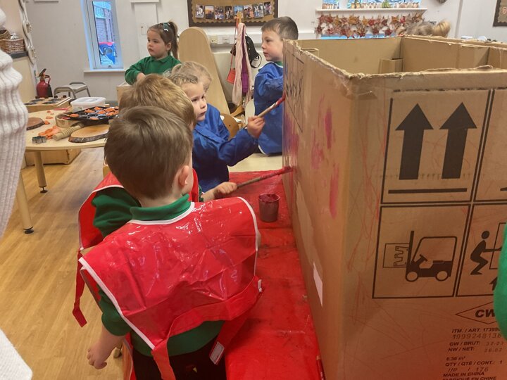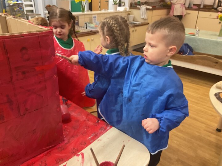 Following on from our ‘Naughty Bus’ book the children were keen to make their own bus. We found a sturdy box and the children took over, painting and creating together to get the job done! Next for the driving and travelling. We have also been talking about finding routes as part of our mathematical learning so children were heard describing the route they were taking. The bus journeys require collaboration and turn-taking but are lots of fun too.