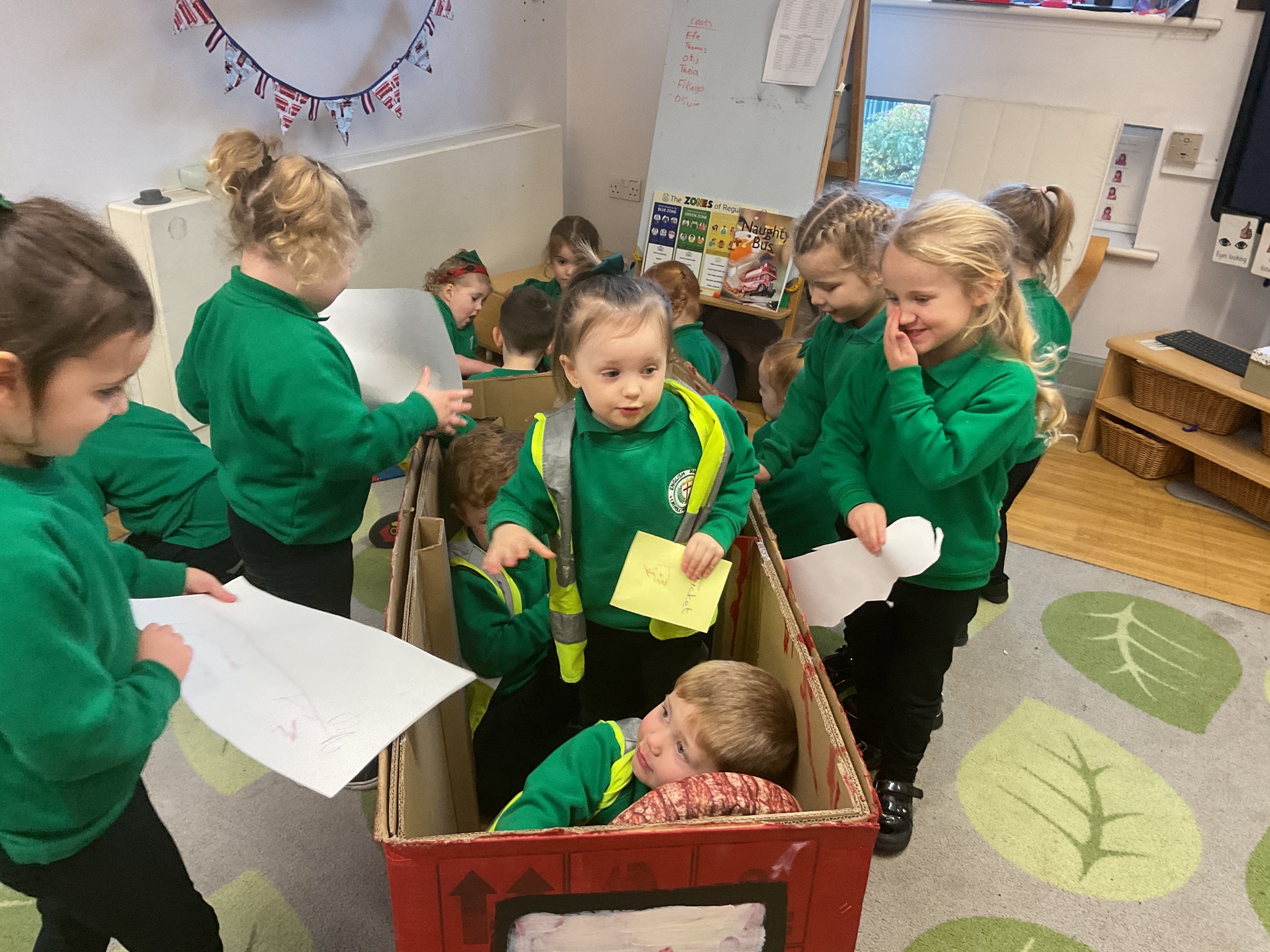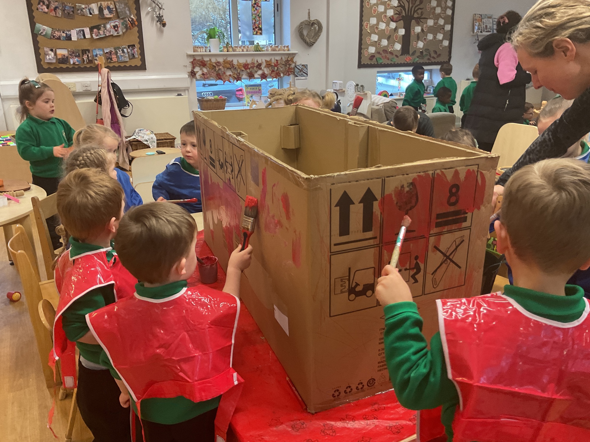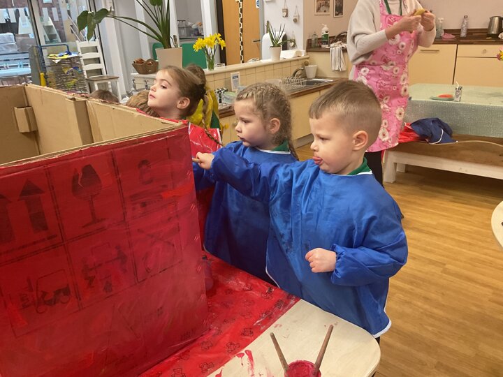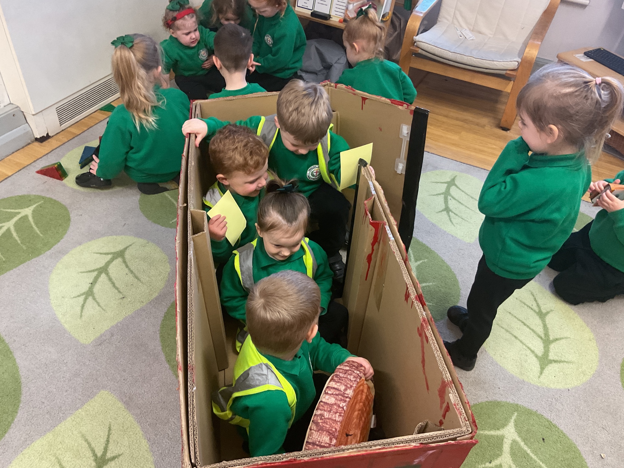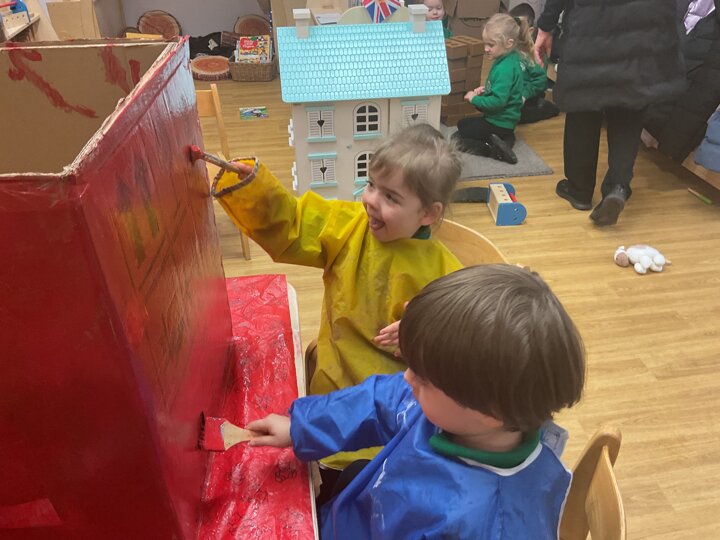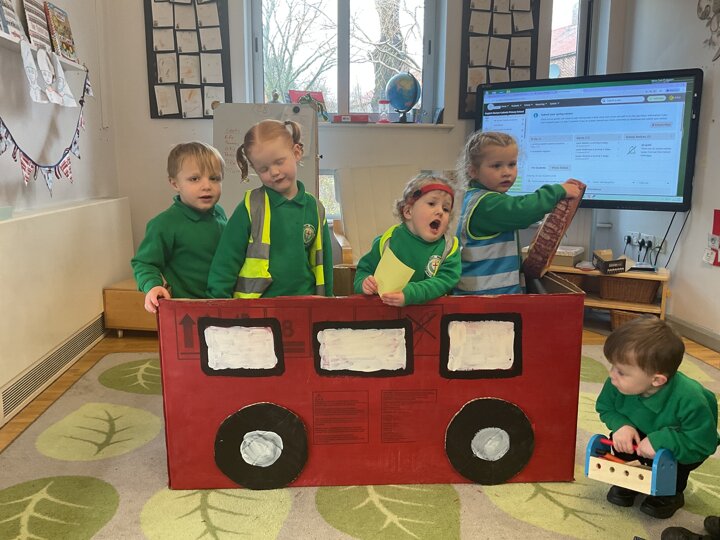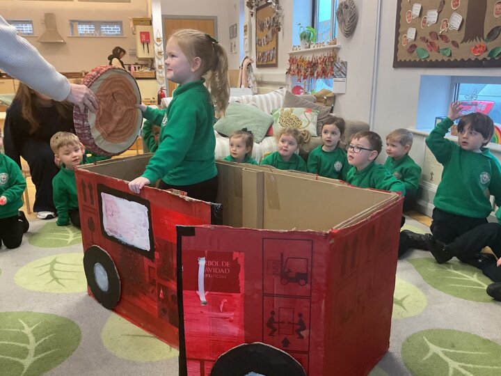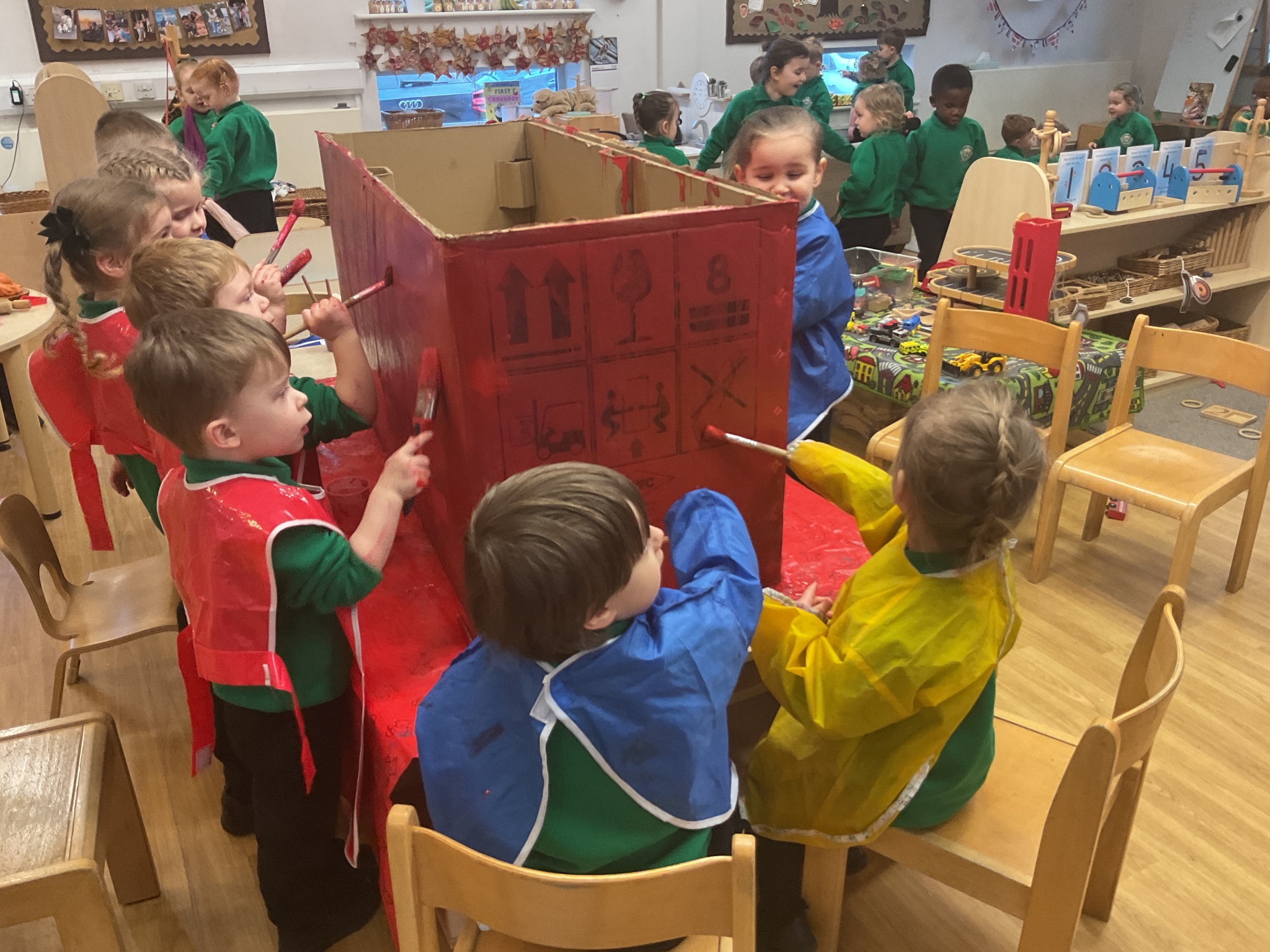 Following on from our ‘Naughty Bus’ book the children were keen to make their own bus. We found a sturdy box and the children took over, painting and creating together to get the job done! Next for the driving and travelling. We have also been talking about finding routes as part of our mathematical learning so children were heard describing the route they were taking. The bus journeys require collaboration and turn-taking but are lots of fun too.