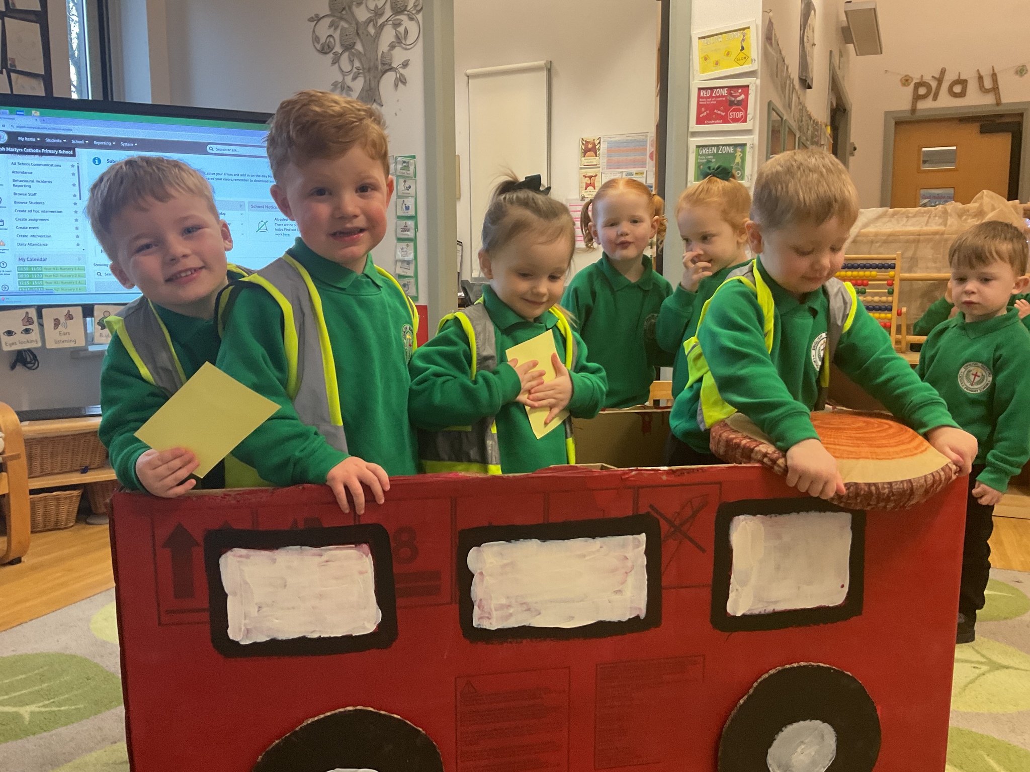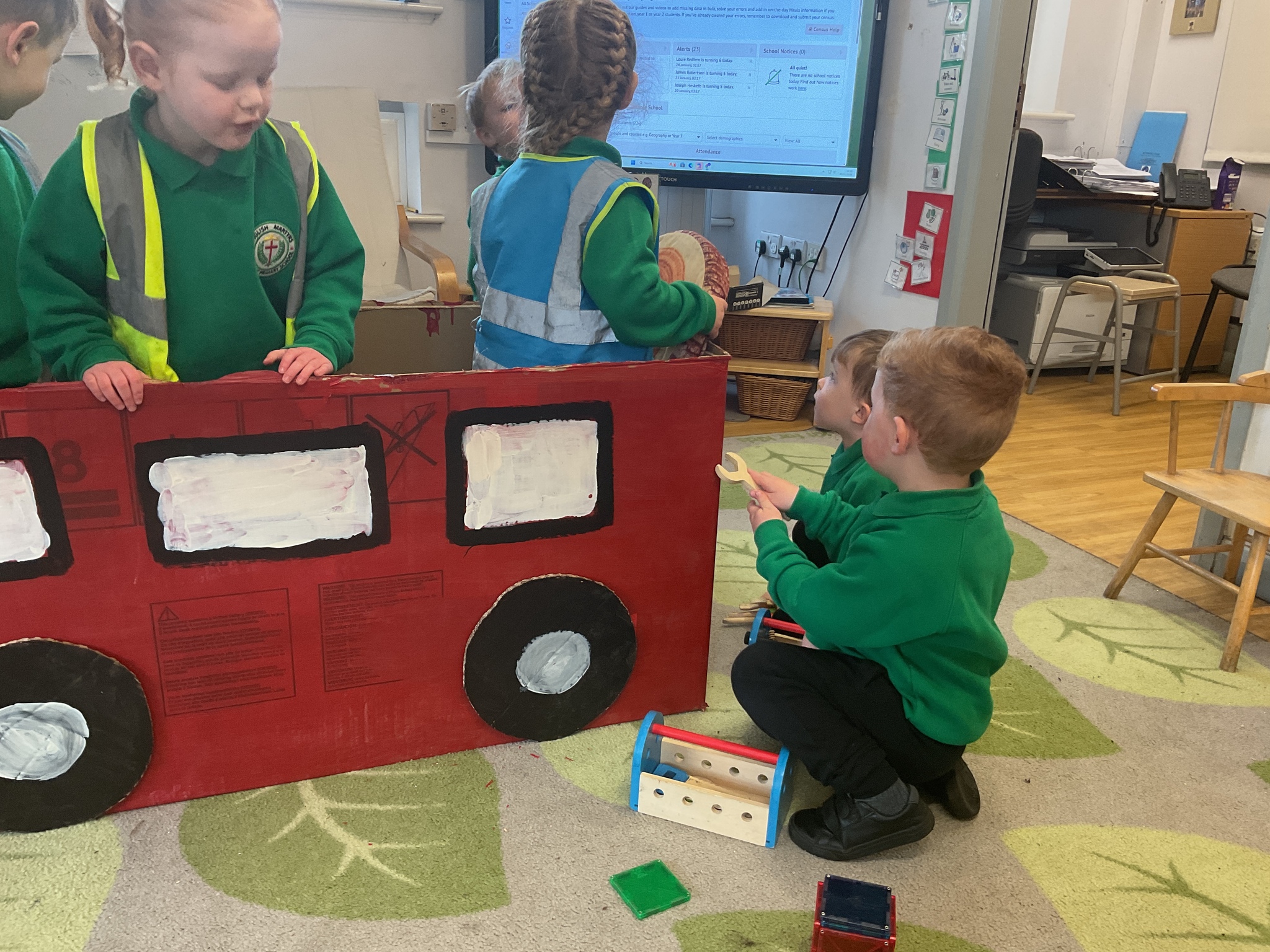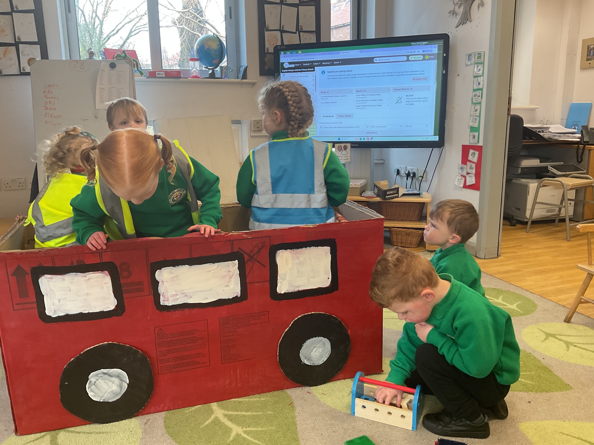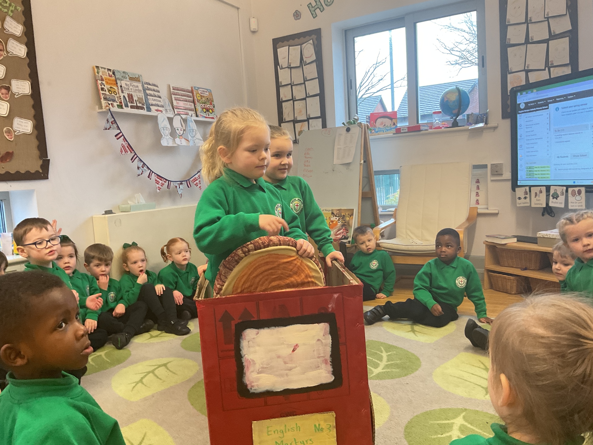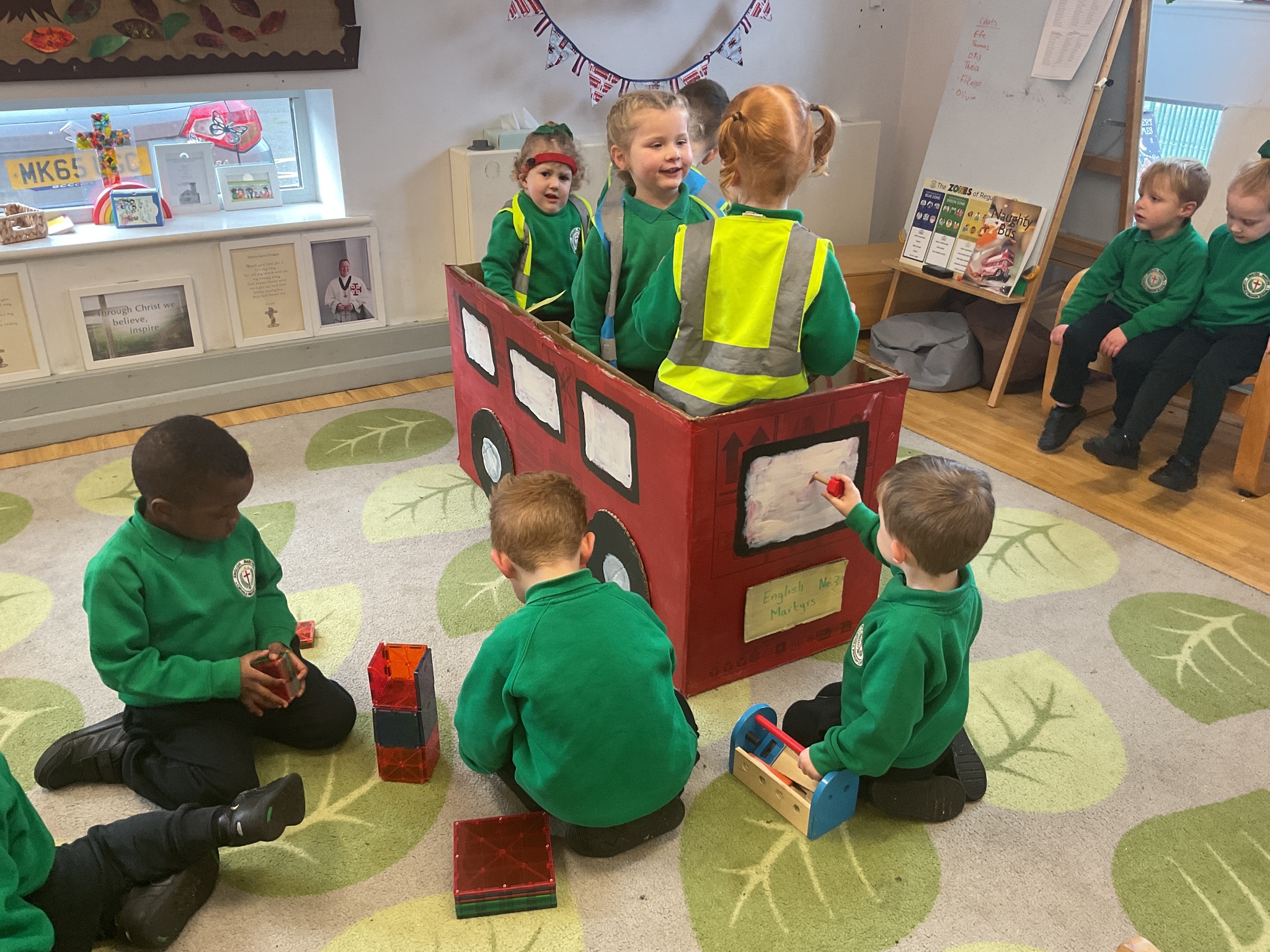 Following on from our ‘Naughty Bus’ book the children were keen to make their own bus. We found a sturdy box and the children took over, painting and creating together to get the job done! Next for the driving and travelling. We have also been talking about finding routes as part of our mathematical learning so children were heard describing the route they were taking. The bus journeys require collaboration and turn-taking but are lots of fun too.