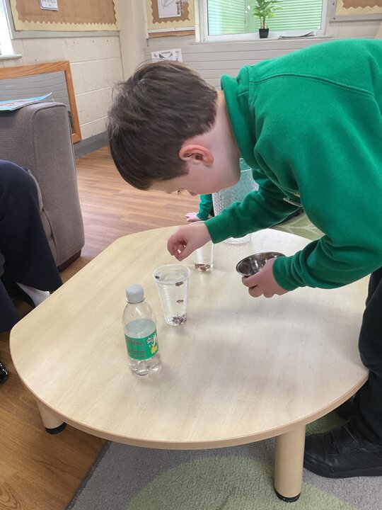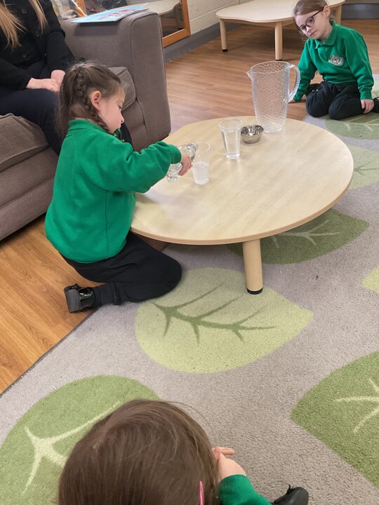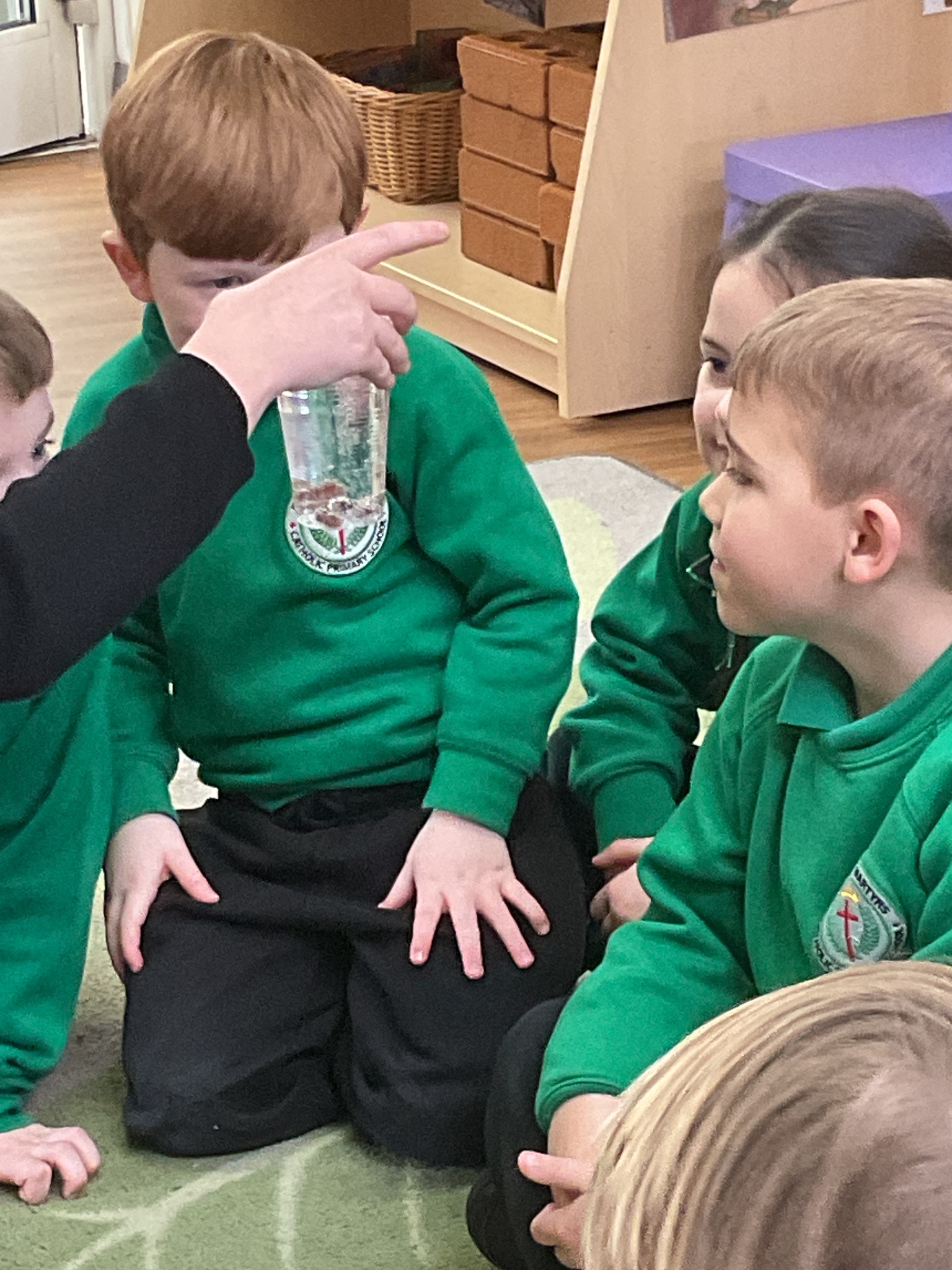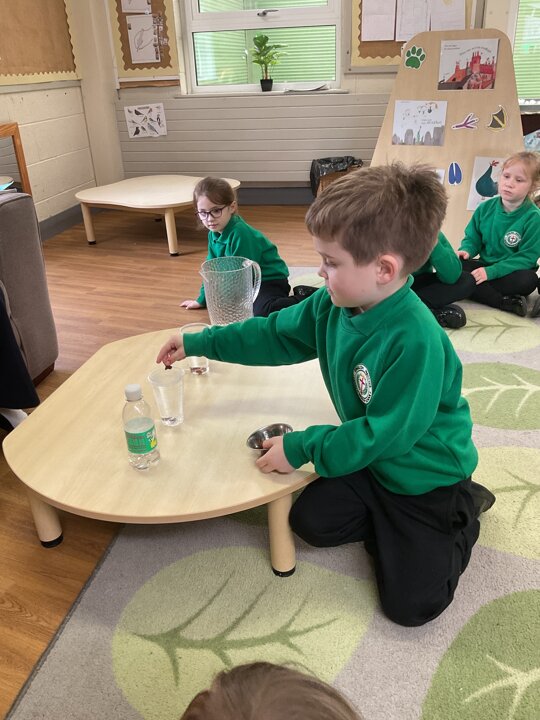 Yesterday we were scientists. We explored what happened to raisins when they are submerged in fizzy water. We watched them dance and it was fascinating! The we predicted how many cotton wool balls we could fit into a shot glass filled to the top with water and we were amazed to discover that we could get 12 into such a tiny eater filled space.